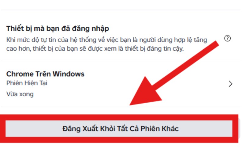 ➡️ Vào ngay phần Cài Đặt > Bảo Mật và chọn "Đăng Xuất Tất Cả Các Phiên". Sau đó đổi mật khẩu ngay lập tức để làm vô hiệu hóa mã Cookie cũ đó.